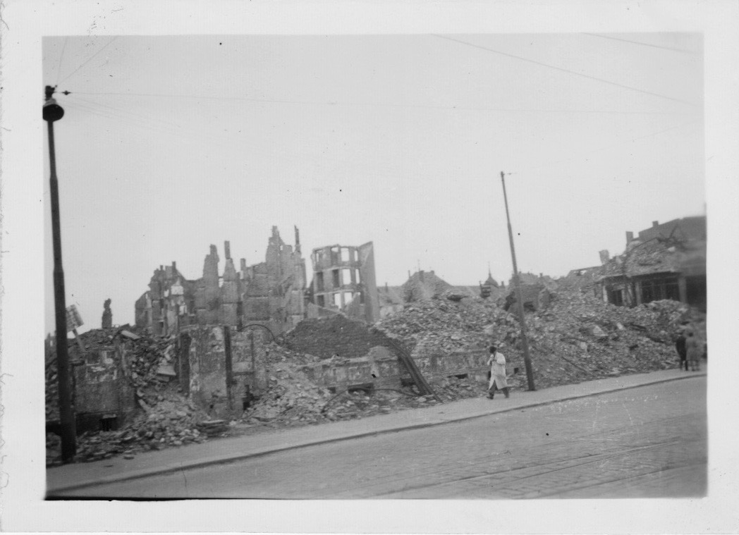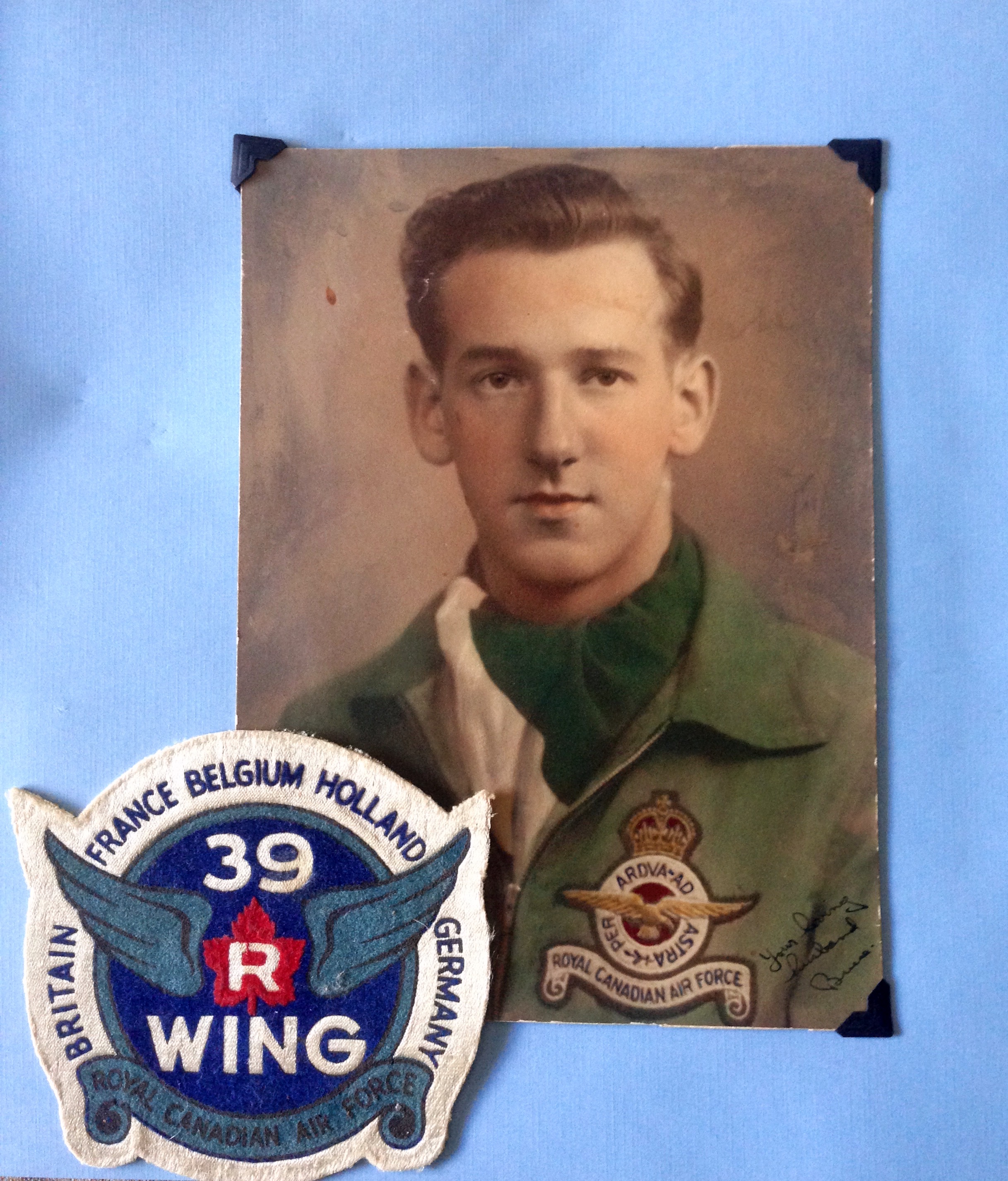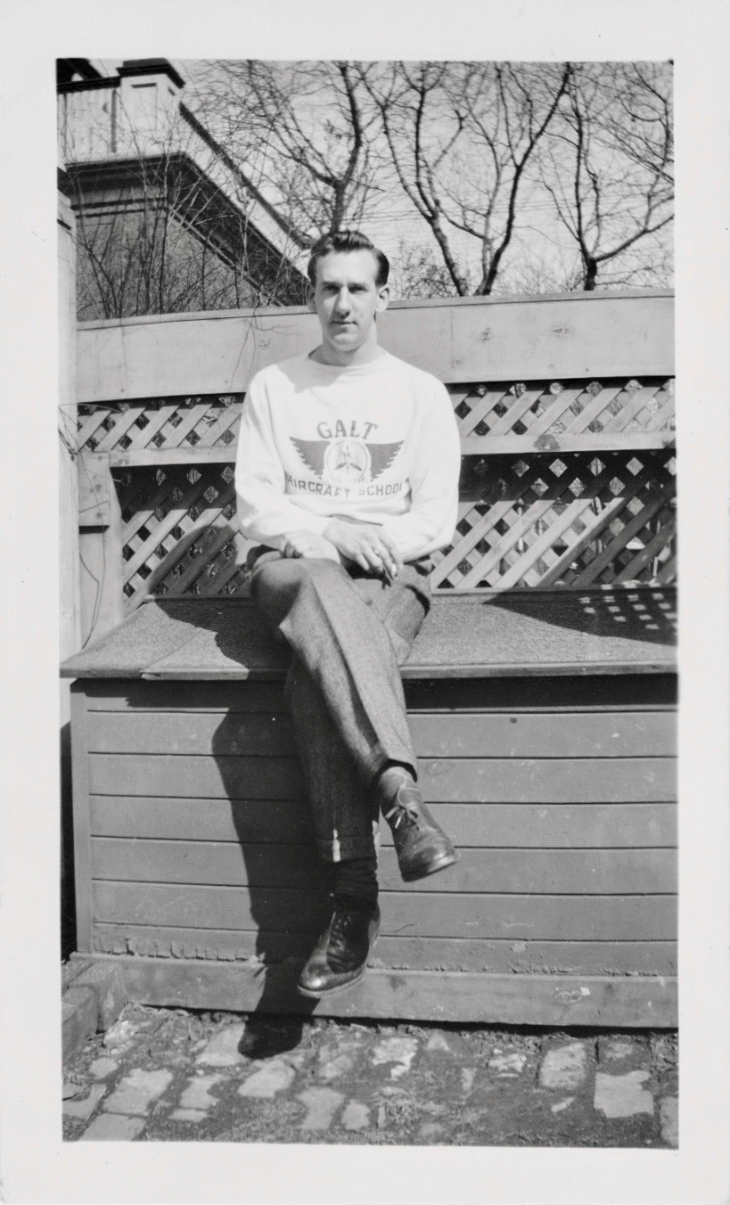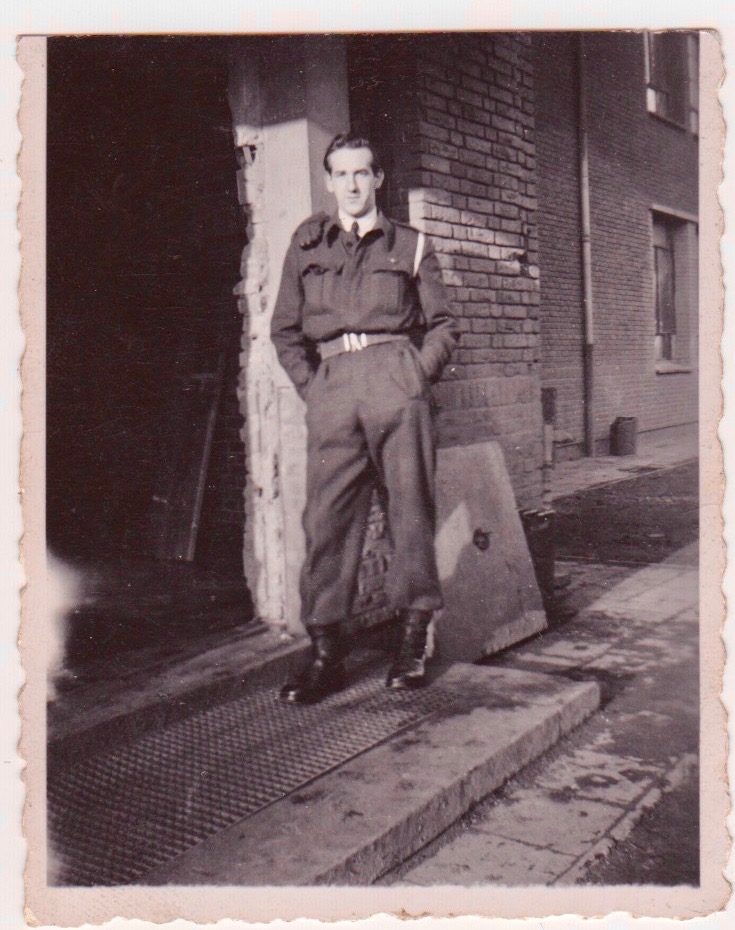 Photo of Dad in Belgium and two photos of Dad back home in Toronto.
