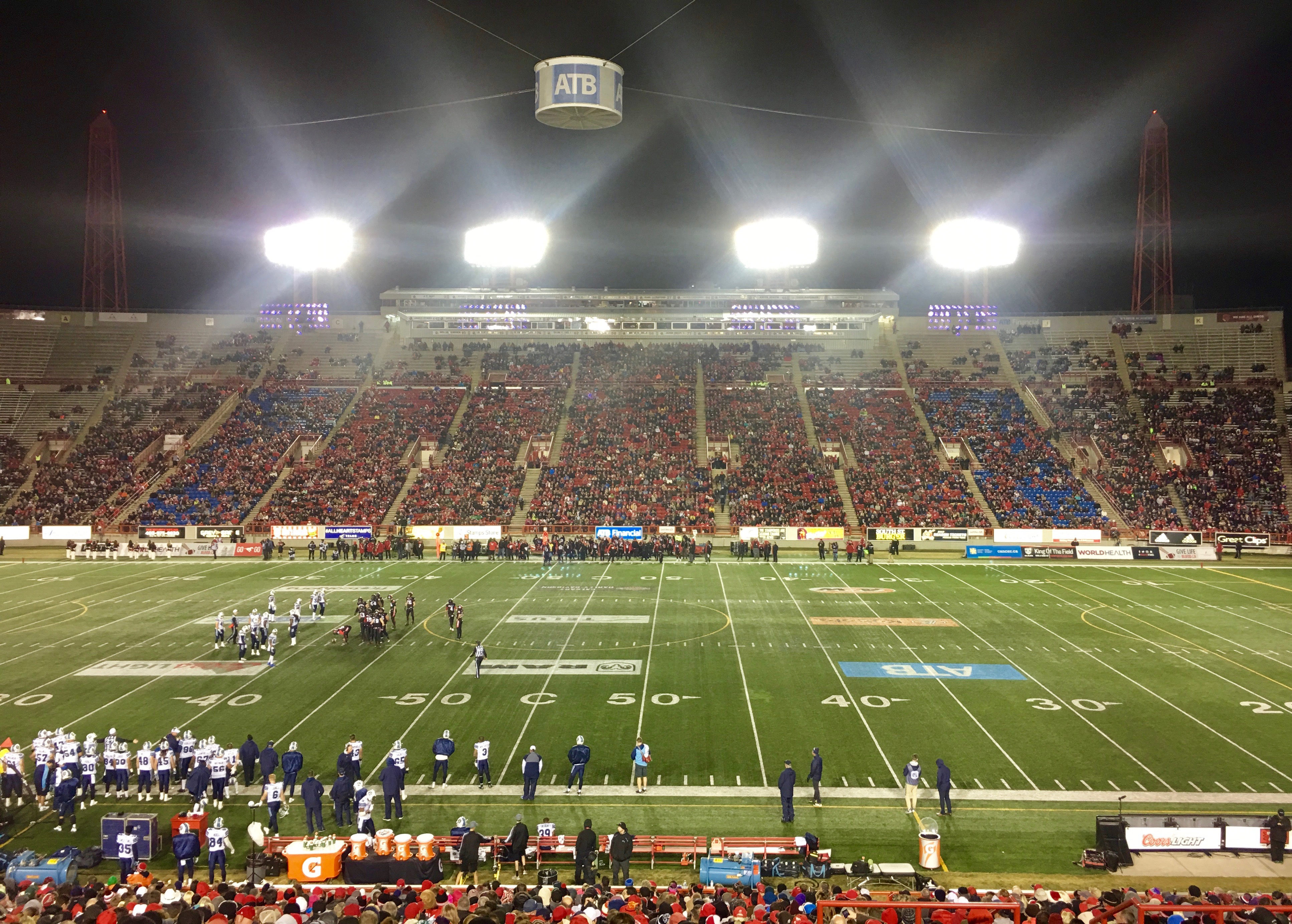 Three years after being posted here to Calgary, my first football game was in October at McMahon Stadium. A business owner with season tickets gave these to my unit and I was fortunate enough to be chosen to go. These were good seats but we were outside so we had to totally bundle up to fend off the cold.