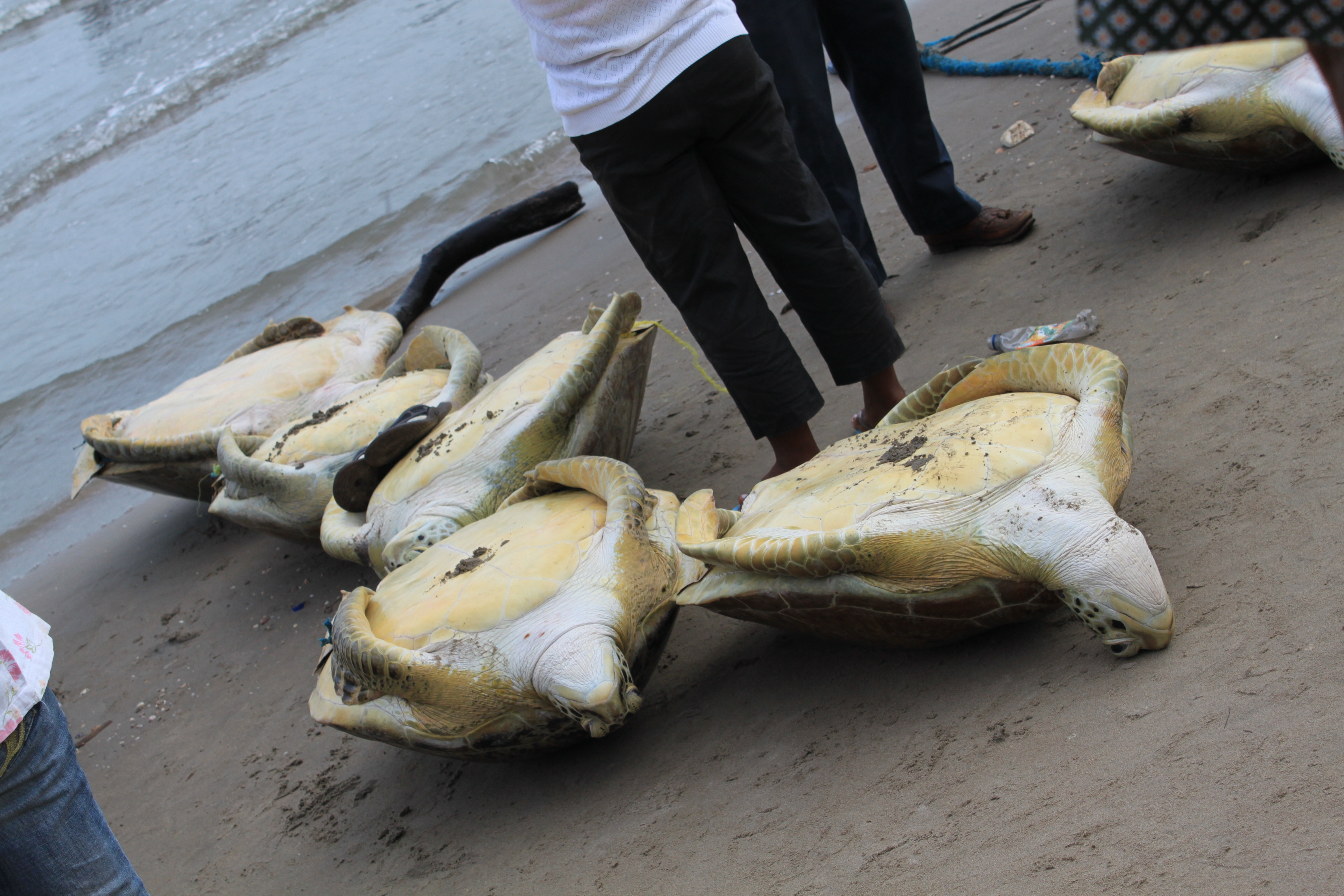 So it was one day we were walking along the beach in Puerto Cabezas. Not all of it is covered in trash, that will be another post. What I encountered was the turtle market on the beach at the pier.