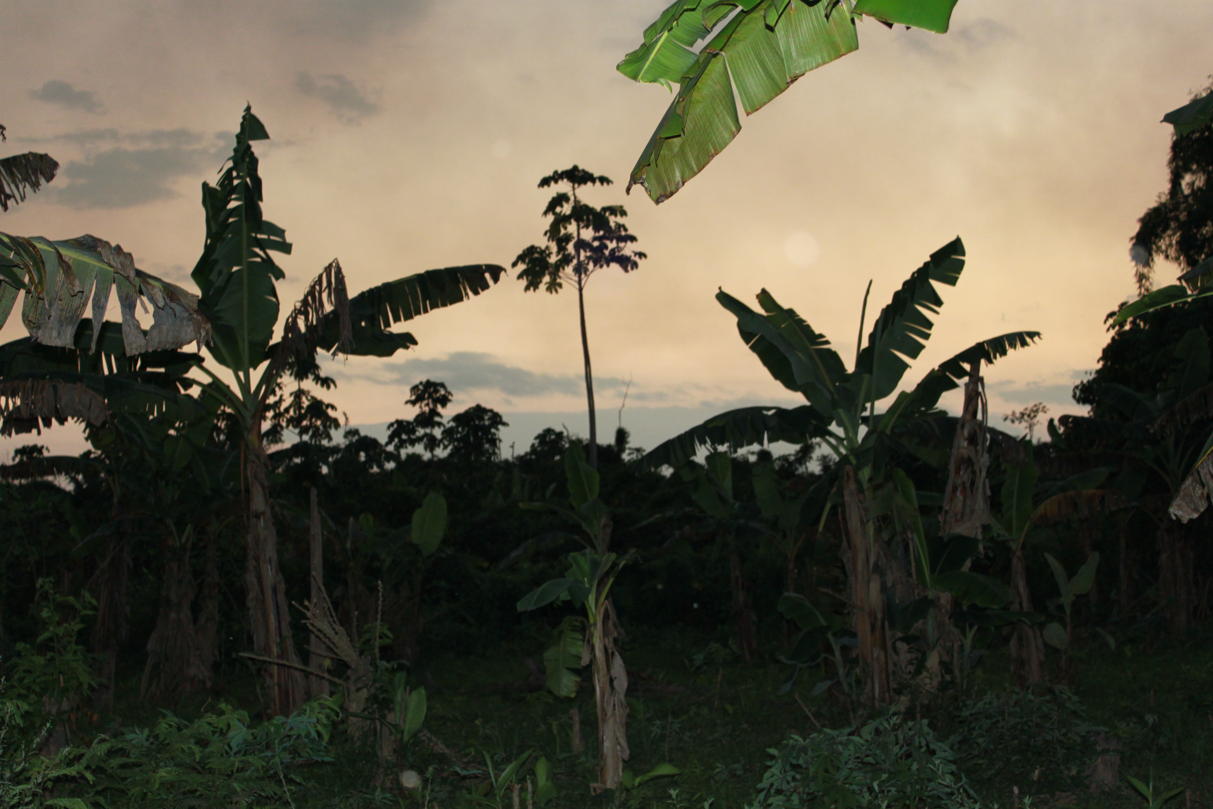 A rickety school bus with holes in the floor and puddle water in the radiator took as far as humanly possible to a spot far west of Santa Marta. It was evening when we started into the jungle, we were headed west into the oncoming darkness. Our gruelling trek lasted until midnight with the path chopped clear by a young man known to my travel buddy.